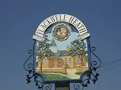![]() Flackwell Heath sign depicting the old village school | |