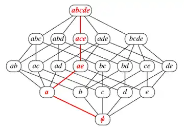 More formally, a flag ψ of an n-polytope is a set {F−1, F0, ..., Fn} such that Fi ≤ Fi+1 (−1 ≤ i ≤ n − 1) and there is precisely one Fi in ψ for each i, (−1 ≤ i ≤ n). Since, however, the minimal face F−1 and the maximal face Fn must be in every flag, they are often omitted from the list of faces, as a shorthand. These latter two are called improper faces.