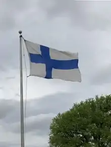 The flag of Finland (Finnish: Suomen lippu, Swedish: Finlands flagga), also called siniristilippu ("Blue Cross Flag"), dates from the beginning of the 20th century. On a white background, it features a blue Nordic cross, which represents Christianity.[1][2][3][4][5]