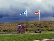 The Northumberland flag is the flag of the historic county of Northumberland and the banner of the arms for Northumberland County Council. The shield of arms is in turn based on the arms medieval heralds had attributed to the Kingdom of Bernicia (which the first County Council used until it received a regular grant of arms). The Bernician arms were fictional but inspired by Bede's brief description of a flag used on the tomb of St Oswald in the 7th century.[1]