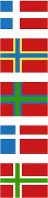 The former flag of Orkney was adopted in 1995. In 2001, the flag of Orkney, the traditional flag of St Magnus, was declined official recognition by the Lord Lyon, the heraldic authority of Scotland, due to similarity with other national flags;[5] as well as the flag of the Kalmar Union.[6]