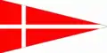| Design | A square flag with a white cross in the centre and background in red. |