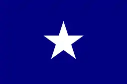 | Design | A white rectangle two times as wide as it is tall, a red quadrilateral in the canton, inside the canton is a blue saltire with white outlining, with thirteen white five-pointed stars of equal size inside the saltire. |