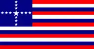 | Design | Three horizontal stripes of equal height, alternating red and white, with a blue square two-thirds the height of the flag as the canton. Inside the canton are seven to thirteen white five-pointed stars of equal size, arranged in a circle and pointing outward. |