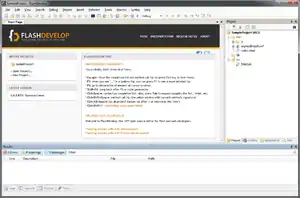 FlashDevelop is an integrated development environment (IDE) for development of Adobe Flash websites, web applications, desktop applications and video games. The resulting applications run in Adobe Flash Player or Adobe AIR, on Microsoft Windows, Mac OS X, Android or iOS. The primary purpose of FlashDevelop is enabling developers to edit, compile, debug and publish a Flash ActionScript project. It supports ActionScript 2.0, ActionScript 3.0, Haxe and other upcoming languages. It has code completion, syntax highlighting, snippets and other features similar to Microsoft Visual Studio.