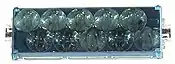 A flashcube was a module with four expendable flashbulbs, each mounted at 90° from the others in its own reflector. For use it was mounted atop the camera with an electrical connection to the shutter release and a battery inside the camera. After each flash exposure, the film advance mechanism also rotated the flashcube 90° to a fresh bulb. This arrangement allowed the user to take four images in rapid succession before inserting a new flashcube.