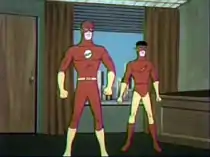 Wally West, as Kid Flash, appears in two segments starring the Flash (Barry Allen); they are titled "Take a Giant Step" and "To Catch a Blue Bolt"; the latter shows Barry and Wally changing into their Flash and Kid Flash uniforms using their rings. Wally's appearance differs from his comic book counterpart. He has black hair, and the red and yellow color scheme of his second costume is reversed, as well as simplified to put him in trunks.