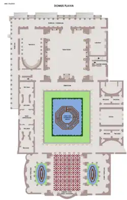 The term Domus Flavia is a modern name for the northwestern section of the Palace where the bulk of the large "public" rooms for official business, entertaining and ceremony are concentrated.[3] Domitian was the last of the Flavian dynasty, but the palace continued to be used by emperors with small modifications until the end of the empire.