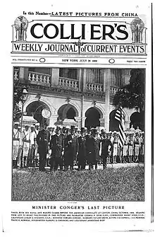 In the weeks ahead more violent attacks ensued and by late June, American newspapers were reporting that Congers, Cheshire, and all other Americans in Peking had been killed.[6] By July 14, with more than one third of the legation killed or wounded, the Chinese government forwarded a conciliatory response thus marking the beginning to the end of the rebellion.