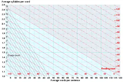 In the Flesch reading-ease test, higher scores indicate material that is easier to read; lower numbers mark passages that are more difficult to read. The formula for the Flesch reading-ease score (FRES) test is:[7]