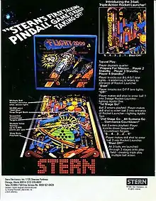 Flight 2000 is a 1980 Stern widebody pinball machine. It was the first table by this company with speech. The theme of the game revolves around futuristic space flight.[1]