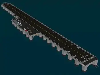 The pneumatic stabilized platform (PSP) was proposed as a means for constructing a new floating airport for San Diego in the Pacific Ocean, at least three miles off the tip of Point Loma.[5] However, this proposed design was rejected in October 2003 due to very high cost, the difficulty in accessing such an airport, the difficulty in transporting jet fuel, electricity, water, and gas to the structure, failure to address security concerns such as a bomb blast, inadequate room for high-speed exits and taxiways, and environmental concerns.[6]