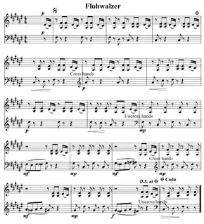 listen), German for "Flea Waltz") is a simple piano piece, often one of the first learned because its fingering is simple and it allows beginners to perform a piece that is harmonically and rhythmically pleasing.