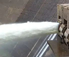 ![]() Tainter gates and spillway |