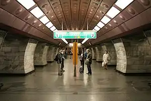 Flora is a Prague Metro station on Line A. It is located under the shopping mall Atrium Flóra, on the border of the Vinohrady and Žižkov districts near the Olšany Cemetery. The station was opened on 19 December 1980 as part of the extension of the line between Náměstí Míru and Želivského.[1]