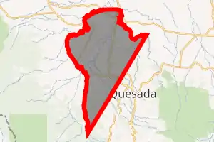 Its head, the city of Florencia, is located 9.7 km (22 minutes) to the NW of Ciudad Quesada and 116 km (2 hours 32 minutes) to the NW of San José the capital of the nation.