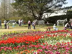 Floriade is a flower and entertainment festival held annually in Canberra's Commonwealth Park on the shores of Lake Burley Griffin.[3] It features extensive displays of flowering bulbs with integrated sculptures and other artistic features. Floriade comes from the Latin word floriat, which means to design with flowers.