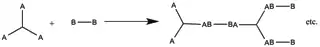 Gelation occurs when a polymer forms large interconnected polymer molecules through cross-linking.[1] In other words, polymer chains are cross-linked with other polymer chains to form an infinitely large molecule, interspersed with smaller complex molecules, shifting the polymer from a liquid to a network solid or gel phase. The Carothers equation is an effective method for calculating the degree of polymerization for stoichiometrically balanced reactions.[1] However, the Carothers equation is limited to branched systems, describing the degree of polymerization only at the onset of cross-linking. The Flory-Stockmayer Theory allows for the prediction of when gelation occurs using percent conversion of initial monomer and is not confined to cases of stoichiometric balance. Additionally, the Flory-Stockmayer Theory can be used to predict whether gelation is possible through analyzing the limiting reagent of the step-growth polymerization.[1]