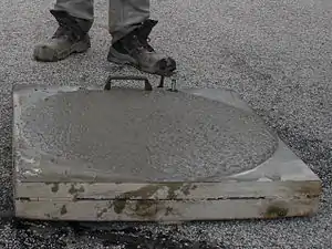 The flow table test or flow test is a method to determine consistency of fresh concrete. Flow table test is also used to identify transportable moisture limit of solid bulk cargoes.[1] It is used primarily for assessing concrete that is too fluid (workable) to be measured using the slump test, because the concrete will not retain its shape when the cone is removed.