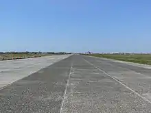 The Department of Docks was in charge of constructing the Barren Island Airport.[40] The first contract for construction was awarded in May 1928. The $583,000 contract entailed filling in or leveling 4.45 million cubic yards (3,400,000 m3) of soil across a 350-acre (140 ha) parcel. Sand from Jamaica Bay was used to connect the islands and raise the site to 16 feet (4.9 m) above the high–tide mark. This contract was completed by May 1929. A subsequent contract for $75,000 involved filling in an extra 833,000 cubic yards (637,000 m3) of land, and was finished by the end of 1929.[41][40] In order to secure an "A1A" rating, the planners built 200-foot-wide (61 m) runways, twice the minimum runway width mandated by the Department of Commerce. These runways were designed for planes taking off.[42][43] The planners also constructed grass fields with several layers of soil, which would allow for smooth plane landings.[40][44] They conducted studies on other infrastructure, such as the power, sewage, and water systems, to determine what materials should be used to allow the airport to get an "AAA" rating, which was the same as an "A1A" rating.[43]