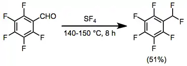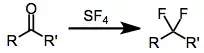 Carbonyl compounds generally react with SF4 to yield geminal difluorides. Reaction times tend to be on the order of hours and yields are moderate.[8]