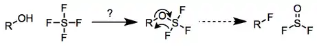 The mechanism of fluorination by SF4 is uncertain and varies across substrates. Originally, alkoxysulfur trifluorides were proposed as intermediates;[3] however, reactions of isolated alkoxysulfur trifluorides with hydrogen fluoride or heating have not provided the corresponding alkyl fluorides.