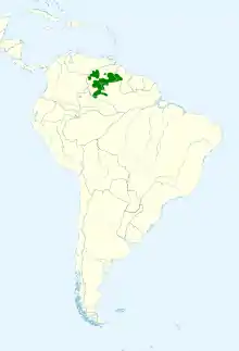 The nominate M. u. ustulatus flutist wren is found in western Guyana, southeastern Venezuela, and the immediately adjoining part of northern Brazil. M. u. duidae is found in Amazonas and western Bolívar states of Venezuela. M. u. lunatipectus is found in central Bolívar state and M. u. obscurus in eastern Bolívar state.[3]