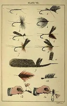Tying artificial flies has always been about imitating some form of fish prey. Significant literature on the concepts of imitation exists especially for trout flies. A Book of Trout Flies – Jennings (1935),[6] Streamside Guide to Naturals & Their Imitations – Art Flick (1947), Matching the Hatch.. Schweibert (1955),[10] Selective Trout - Swisher and Richards (1971),[11] Nymphs - Schweibert (1973),[12] Caddisflies - LaFontaine (1989),[13] Prey - Richards (1995) are a few 20th-century titles that deal extensively with imitating natural prey. From a human perspective, many fly patterns do not exactly imitate fish prey found in nature, but they are nevertheless successful. A successful or "killing" fly pattern imitates something that the target species preys on. This has resulted in fly tyers and fishers devising additional terms to characterize those flies that obviously do not imitate anything in particular, yet are nevertheless successful at catching fish. These additional terms are inconsistently but commonly associated with trout-fly patterns because of their huge variety, both historical and contemporary. The term Attractor pattern has been applied to flies which resemble nothing in particular but are successful in attracting strikes from fish.[14] Dick Stewart characterizes these same patterns as General Purpose.[15] Dave Hughes describes the same flies as Searching flies and characterizes three levels of imitation: Impressionistic, Suggestive and Imitative.[16]