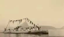 The following year, in 1915, the first group of submarine officers was formed in the country.[12] Two years later, the Submersible Flotilla gained the support of the submarine tender ship Ceará, which offered mobile support for repairs, maintenance, supply of torpedoes, electricity, compressed air, fuel, drinking and distilled water, spare parts and crew accommodations. It was the only navy ship that allowed an F submarine to be docked for testing and repairs. However, there are no records of this ever occurring throughout the class's entire period of activity.[13][10] On the occasion of the First World War, the submarines were appointed patrol the coast of Rio de Janeiro, with the only incident being the near collision of the F1 against the merchant ship Gurupy.[2]