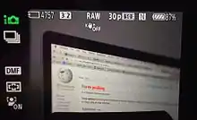 Focus peaking is a focusing aid in live preview or electronic viewfinders on digital cameras that places a white or coloured highlight on in-focus edges (contours) within an image using an edge detect filter.