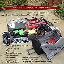 Two substantial advantages of folding kayaks are lightness and portability. Most models typically weigh 1/3 to 1/2 less than composite (fiberglass or rotomold) or polyurethane kayaks of similar dimensions. Most models can be packed down small enough when dismantled to be stored in a closet or carried in the boot of a car and can be checked as baggage on most airlines. Even having to pay excess baggage charges for some flights is still more economical than the cost of renting boats at a paddler's destination. For example, the 12' Pakboat Puffin solo folding kayak weighs only 24 pounds with the optional deck. It can be packed in a bag that meets airline dimensions and weight for "standard" baggage with enough room to spare for all the safety gear and clothing needed for paddling.