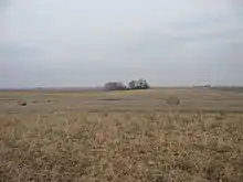 The town is located at the western edge of the Des Moines Lobe, the most recently glaciated section of Iowa. The Des Moines Lobe is part of the prairie pothole region of the Midwest. The topography is irregular in its gently rolling terrain. Wetlands, glacial erratics, concentric bands of ridges, and large flat areas characterize the land surrounding Fonda. In its natural state, the land is poorly drained, although humans have added an extensive network of tiles to move water from the potholes to local tributaries. The tiles surrounding Fonda empty into Big Cedar Creek, a tributary of the Raccoon River. This waterway, which underwent channelization in the early 1900s, flows past the town on its west end. Evidence of its winding original path still exists, particularly in the Fonda Golf Course and in the schoolyard behind Our Lady of Good Counsel Catholic Church.