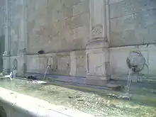 The Fontana del Formiello (Fountain of the Formiello) is a historic public fountain located at the rear exterior of the Castel Capuano, facing Piazza Enrico de Nicola, and across the street from the church and convent of Santa Caterina a Formiello in Naples, Italy.[1] The term Formiello comes from the forms or containers for water spouts found in the convent. The fountain had been placed in storage during the late 19th century, and reconstructed at this site in 1930.