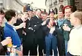 The following year the match was to be played at Wembley Stadium and avoiding the large police presence at Trafalgar Square on the day of the match the CCS set off on a search for opposition firms to fight. At Euston railway station outside the main entrance they spotted a crew of English hooligans and the Hibs boys wasted no time in setting about them. The Hibs mob then made their way to the Soho area where they attacked a pub containing English lads with a minor street battle breaking out.[35] In Leicester square a gang of Hibs casuals encountered an English firm made up of Chelsea Headhunters and other thugs from northern England and again the CCS steamed in. The ensuing pitched battle was an unexpected site for the tourists in one of London's famous thoroughfares as they observed the hooligan chaos of mob violence, people being decked, a series of fight and flight responses and then the English lads applauding themselves.[36]