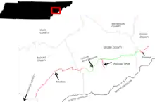 | Blount | Chilhowee | 0.0 | 0.0 | Western segment southern terminus | |