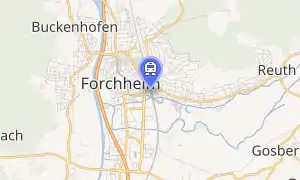 Forchheim (Oberfr) station is a railway station in the town of Forchheim, in the Forchheim district in Upper Franconia, Germany. The station is located at the junction of the Nuremberg–Bamberg and Forchheim–Behringersmühle lines of Deutsche Bahn.[1]