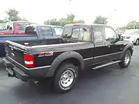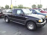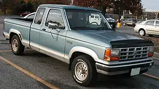 Slightly larger than the Courier, the first-generation Ranger was approximately 18 inches shorter and 11 inches narrower than an equivalently configured F-100/F-150.[5] While proportioned similar to the Chevrolet S-10 and Japanese-sourced compact trucks, adopted exterior design elements from the F-Series, including its twin headlamps, chrome grille, tailgate lettering, taillamps, and cab proportions.[17] In line with the Courier, the Ranger was offered with two pickup bed sizes; a standard 6-foot length and an extended 7-foot length. In 1986, a third configuration was introduced, as the Ranger SuperCab extended cab was introduced. Stretched 17 inches behind the front doors for additional cab space, the SuperCab was offered with the 6-foot bed length; four-wheel drive SuperCabs were sold only with V6 engines.[17]