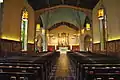 It contains the old altar from the current St. Patrick's Cathedral,[3] as well as stained glass windows given to the university by King Louis Philippe I of France.[1] The windows are particularly notable for their connection to a workshop in Sevres, France, where the earliest stages of the Gothic Revival took place.[1] The six windows in the nave of the University Church depict the Four Evangelists, St. Peter, and St. Paul.[4]