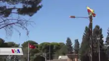Turkey – Neighbouring Turkey has received PYD co-chair Salih Muslim for talks in 2013[59] and in 2014,[60] even entertaining the idea of opening a representation office for the autonomous region in Ankara "if it's suitable with Ankara's policies."[61] Nonwithstanding, Turkey is persistently hostile, because it feels threatened by the autonomous region's emergence encouraging activism for autonomy among Kurds in Turkey and the Kurdish–Turkish conflict, and in this context in particular the autonomous region's leading Democratic Union Party (PYD) and the YPG militia being members of the Kurdistan Communities Union (KCK) network of organisations, which also includes both political and militant assertively Kurdish organizations in Turkey itself, including the Kurdistan Workers' Party (PKK). Turkey's policy towards the autonomous region is based on an economic blockade,[62] persistent attempts of international isolation,[63] opposition to the cooperation of the international Anti-ISIL-coalition with the militias of the autonomous region,[64] and support of Islamist Syrian Civil War parties hostile towards the autonomous region,[65][66] in past times even including ISIL.[67][68][69] Turkey has on several occasions also been militarily attacking the territory of the autonomous region and defence forces.[70][71][72] The latter has resulted in some of the most clearcut instances of international solidarity with the autonomous region.[44][73][74] In the perception of much of the Turkish public, the federal project of the autonomous region as well as U.S. support for the YPG against ISIL are elements of a wider conspiracy scheme by a "mastermind" with the aim to weaken or even dismember Turkey, in order to prevent its imminent rise as a global power.[75] Kurdish opposition party leader Selahattin Demirtaş has argued for Turkey and other countries to recognize the autonomous region and work with it as a partner.[76][77]