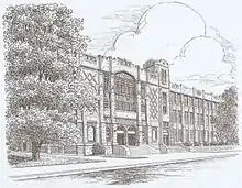 ![]() Drawing of the main entrance to the school used in the diploma cover. | |