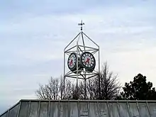 The $38 million station, designed by Cambridge Seven Associates, was constructed of brick, steel and glass; it was meant to resemble a greenhouse to fit in with the surrounding parks. The station's $120,000 clock tower has become a local landmark; it is mirrored by four interior clocks.[15][16][17] Orange Line service on the El ended on May 4, 1987, and began on the Southwest Corridor on May 7. The corridor reopened to commuter rail and Amtrak on October 5, 1987, though Needham Line service did not resume until October 19.[12]
