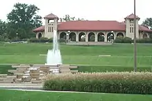 Located on Government Hill, the World's Fair Pavilion sits on the site of the world's fair Missouri Government that was meant to be permanent but burned only weeks before the closing of the fair. It opened in 1910 as a gift from the Louisiana Purchase Exposition Committee and helped to fulfill their promise to restore the park after the 1904 World's Fair.[56] Designed by English architect Henry Wright, the pavilion originally cost $35,000 to build.[56]