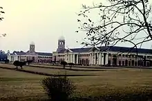 Established as Imperial Forest Research Institute in 1906, the Forest Research Institute (FRI)[4] Dehradun, was first situated at Chandhbagh (the present location of the Doon School) on the Mall Road. A much larger campus at the present location was acquired ca 1923. Construction of the new buildings commenced thereafter. Styled in Greco-Roman Architecture by C.G. Blomfield, the main building was inaugurated in 1929 by then Viceroy Freeman Freeman-Thomas, 1st Marquess of Willingdon. It is now a National Heritage site.
