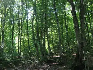 Forests are situated in the Shamkirchay valley, which is the part of the northern side of Lesser Caucasus. They are mainly distributed along the riversides, where water resources are rich. There are different maple species, walnut, and hackberry in these forests. Christ's Thorn, pomegranate, and juniper also can be found on the slope areas. In Shamkir, there are different type of forests such as beech and beech-hornbeam forests, pear-maple forests, and Georgian Oak-hornbeam forests. Plum, hawthorn, apple, medlar, and pear can be found on scrublands.[5]