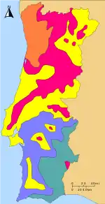 The maritime pine (Pinus pinaster) is found at an intermediate altitude and on generally siliceous soil, which in Galicia goes down to sea level and inland alternates with Pyrenean oak. Over limestone, the black pine (Pinus nigra subsp salzmannii)[3] plays an important role in many of the mountain ranges in the centre, east and south of the Peninsula; in limy soil, and at the same altitude, it usually displaces the former. Both are displaced at higher altitudes by the Scots pine.