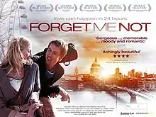 On Rotten Tomatoes the film has an approval rating of 69% based on reviews from 13 critics.[3] Dennis Harvey in Variety found the film "a pleasant if slender affair reminiscent of Before Sunrise, with a little Once tossed in", that "moves gracefully toward a conclusion that will trigger tears from some viewers, though others may find it a bit too heavy a tragic load for the film to bear."[4] Tom Huddleston in Time Out, wrote that "A frequent criticism of ultra-low-budget independent movies is that they try to do too much. 'Forget Me Not' may even be guilty of doing too little – but what it does attempt, it largely pulls off" and concluded that "ambitious it ain't, but Forget Me Not is a modest, memorable and rather moving slice of DIY cinema, despite the lack of bears in the London eye."[1] Patrick Smith in The Daily Telegraph compared the film to Richard Linklater's Before Sunrise and Before Sunset, but found that although it "isn't quite as accomplished", Menzies and O'Reilly have enough chemistry for the climax to be surprisingly poignant."[5] Roger Ebert concluded that the film resembles Linklater's films, but "moves along too deliberately", and although the ending "conceals an emotional impact, sad and carefully orchestrated...the film isn't very compelling."[6]