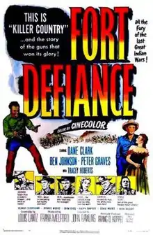 Fort Defiance is a 1951 American Western film directed by John Rawlins and written by Louis Lantz. The film stars Dane Clark, Ben Johnson, Peter Graves, Tracey Roberts, George Cleveland and Ralph Sanford. The film was released on October 9, 1951, by United Artists.[1][2]