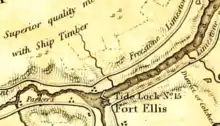 Fort Ellis was a British fort or blockhouse built during the French and Indian War, located at the junction of the Shubenacadie and Stewiacke Rivers, close to Stewiacke, Nova Scotia, Canada.[1] (The location was labelled Ville Pierre Hebert by Charles Morris. The 14 Acadian families in the area vacated with the Acadian Exodus.)[2] Charles Morris recommended a Fort on the Shubenacadie River in 1753.[3] Governor Lawrence first considered the fort in 1754 as a means to protect Halifax from Mi'kmaq raids.[4] Lawrence decided the fort would not be effective until after the Battle of Fort Beauséjour. The fort was completed on October 18, 1761, shortly after the Halifax Treaties were signed.[5] The fort was to guard the new road built to connect Truro and Halifax against Mi'kmaq raids. The fort was called Fort Ellis after Governor Henry Ellis, who was appointed governor weeks after the forts completion. The fort was never garrisoned and eventually abandoned in 1767. (Fort Belcher, named after Governor Jonathan Belcher, was built on Salmon River in Lower Onslow, Nova Scotia (1761-67).[6] Fort Franklin was built at Tatamagouche in 1768, named after Michael Francklin and lasted only a year. [7][8] Fort Morris (Nova Scotia) was named after Charles Morris.)