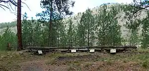 A portion of the fort has been reconstructed at Fort Fizzle Historic Site,[13] adjacent to U.S. Route 12. The site parallels the historic Lolo trail once used by the Nez Perce, Salish, and Kootenai tribes and Lewis and Clark. Lewis and Clark's westbound expedition ascended Lolo Creek in mid-September 1805, and they revisited the area on their way back east in late June 1806.[14]