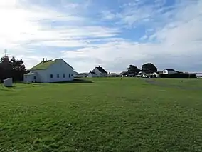 Fort Humboldt was established on January 30, 1853, by the Army as a buffer between Native Americans, gold-seekers and settlers under the command of Brevet Lieutenant Colonel Robert C. Buchanan of the U.S. 4th Infantry Regiment.[1] Like Buchanan, many of the soldiers of this unit were veterans of the Mexican–American War.[1] Starting about 1853, Seth Kinman was hired as a market hunter to supply elk meat to the fort.[2] Fort Humboldt was sited on a strategic location on the bluff overlooking Humboldt Bay and Bucksport, a town named after David Buck, a member of the Josiah Gregg exploration party.[3]